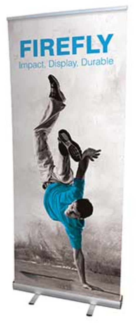 Dwustronny rolowany baner zewnętrzny. Produkt zbudowany jest z trwałych i mocnych materiałów, jednocześnie jest bardzo łatwy w montażu i transporcie.